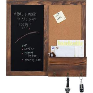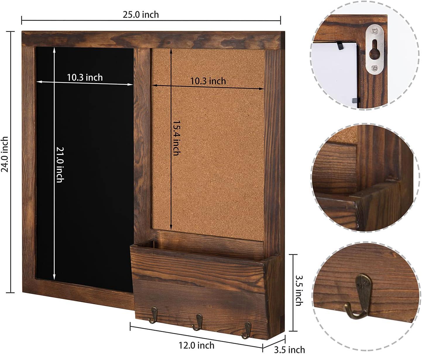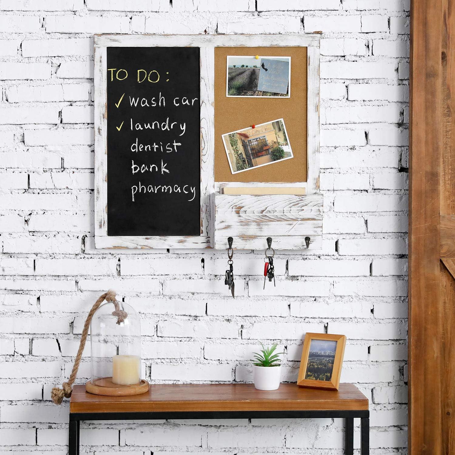 MyGift Whitewashed Wood Entryway Family Command Center Wall Organizer with Chalkboard, Cork Board, Mail and Key Holder(Drak Brown)