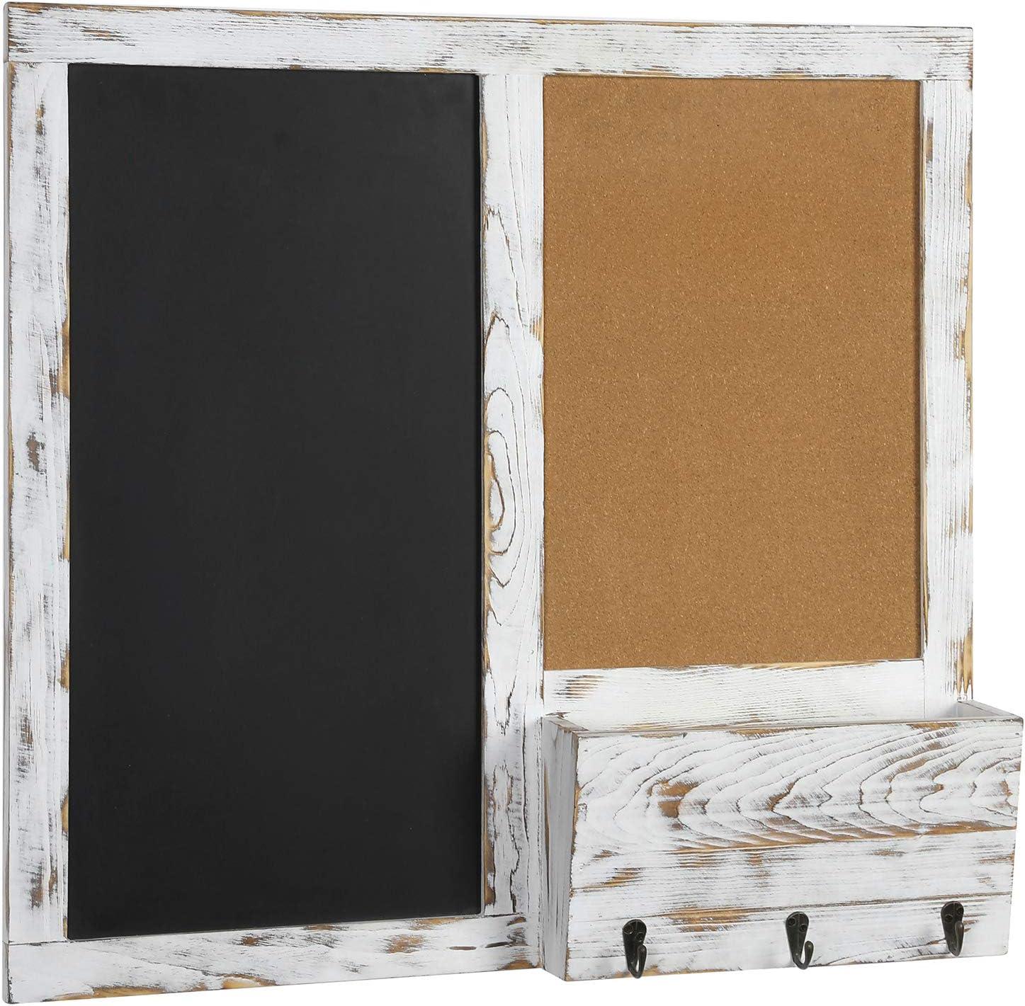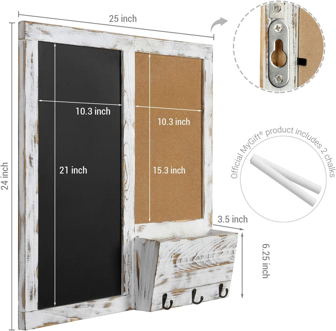 MyGift Whitewashed Wood Entryway Family Command Center Wall Organizer with Chalkboard, Cork Board, Mail and Key Holder(Whitewashed)