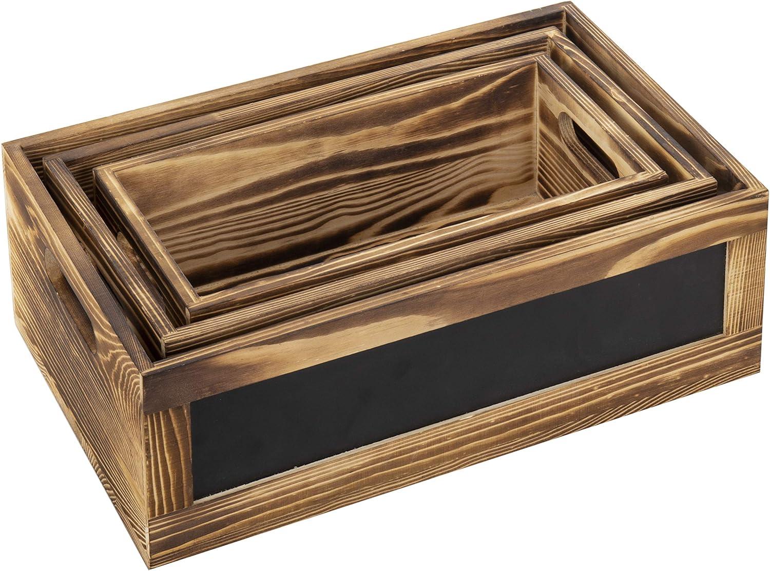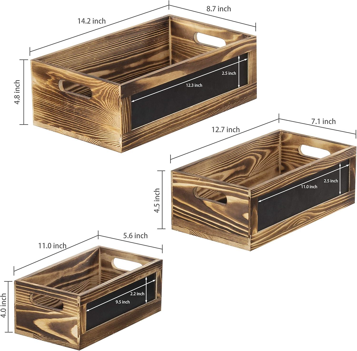 MyGift Rustic Burnt Wood Nesting Storage Bins with Chalkboard Panel and Cutout Handles, Decorative Farmhouse Wooden Stackable Open Top Boxes, 3 Piece Set(Burnt Wood)