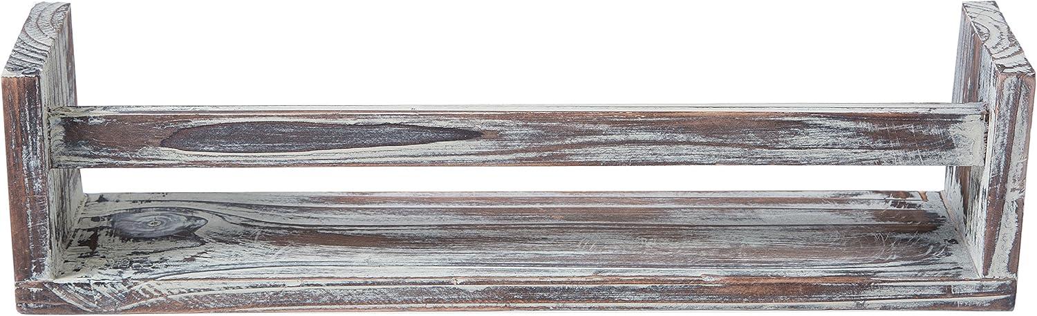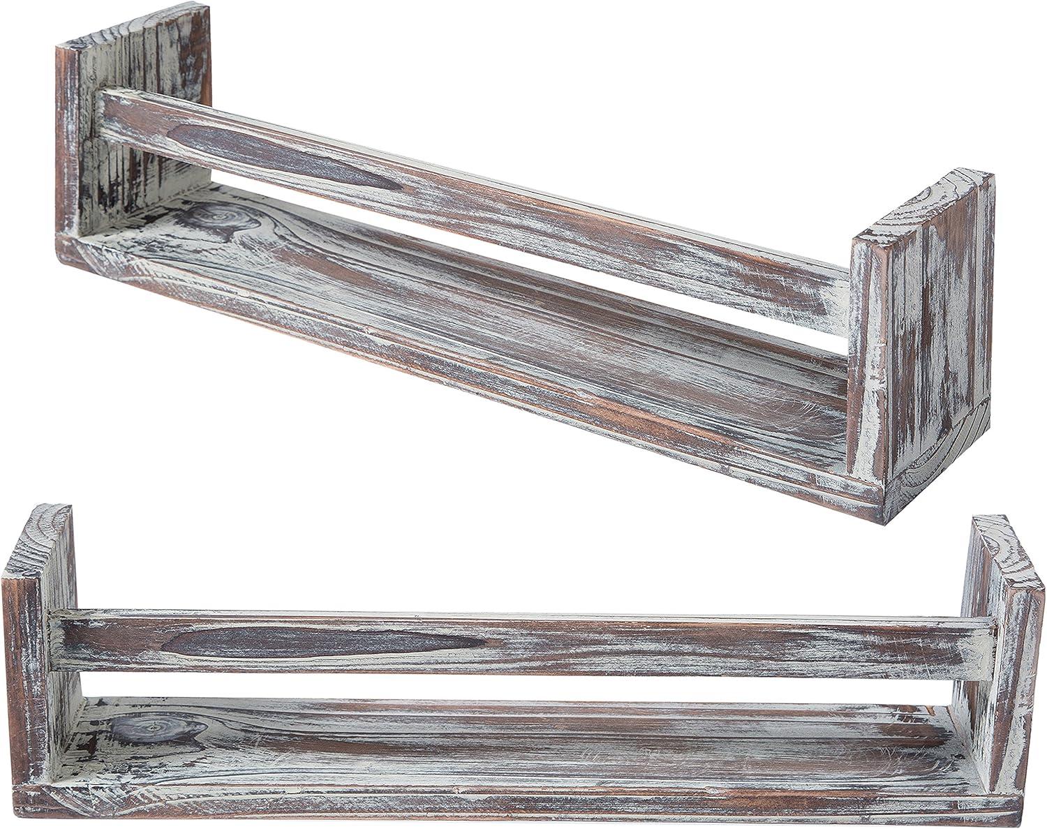 MyGift Torched Wood Spice Rack Wall Mount Hanging Kitchen Seasoning Jar and Condiment Display Shelves, Set of 2
